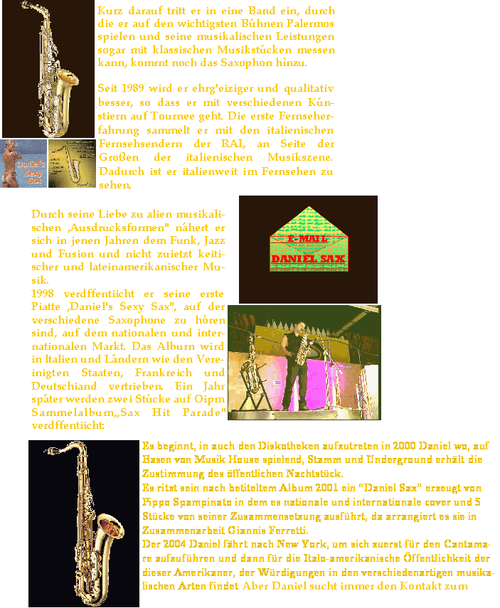 Daniel Sax, im búrgerlichen leben Daniele Raro, wurde am 15.2.1964 in
